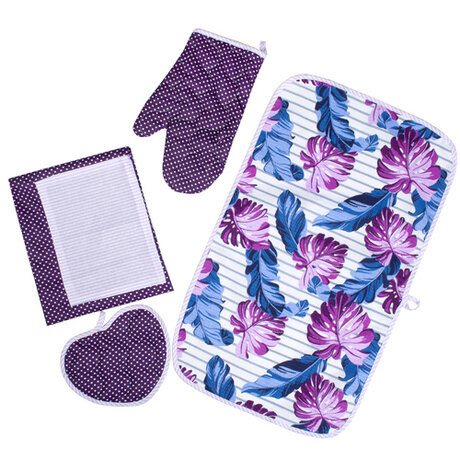 Название: | Набор для кухни 'Весеннее ретро' 4 предмета (Рукавичка 30х17, прихватка-сердце 16х20, фартук 55х70, полотенце с окантовкой 35х60), 100% хлопок, 'Фиолетовый' |