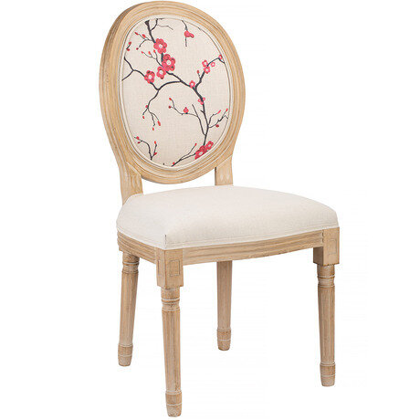 Оригинальный стул в классическом стиле, выполненный из натурального дерева с обивкой из льняной ткани с принтом цветущей сакуры. Богатый образ этого изделия встретит ваших гостей с величием и гостеприимством.