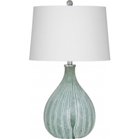 Элегантная настольная лампа, выполненная в морской тематике, основа лампы матовая, цвета морской волны с фактурным покрытием, изготовлена из стекла. Абажур из плотного белого льна.