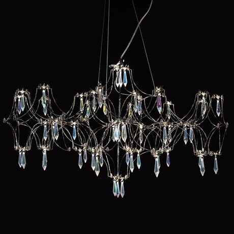 Люстра Emilia подвесная D73 хром Дизайнерская люстра Emilia сразу рождает ассоциации с королевской роскошью. Обилие сверкающих подвесок из стекла или хрусталя создает ощущение праздника. Замысловатые переплетения изогнутых элементов каркаса смотрятся одновременно просто и необычно. Повторяя традиционный дизайн классических люстр, подвесной светильник выглядит воздушным, легким за счет использования тонких прутков нержавеющей стали. Модель гармонично смотрится в классическом, неоклассическом и современном интерьере.Цоколь:LEDЦветовая температура:3000КДиммирование:нетКоличество светодиодов:57Световой поток, lm:3420Мощность, вт:28Степень защиты:IP20Крепление:Потолочная площадка; Цанговый подвесДлина тросов:150 см