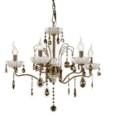 Назначение светильника: для комнаты, Стиль светильника: классика, Материал светильника: металл, стекло, хрусталь, Диаметр: 600 мм, Высота: 500 мм, Количество ламп: 5 шт, Тип лампы: накаливания, Мощность: 60 Вт, Патрон: Е14, Пульт ДУ: нет, Цвет арматуры: коричневый